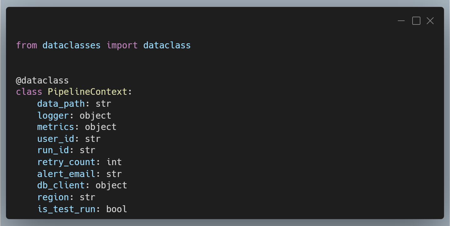 Now your functions take one parameter instead of eleven. And your pipeline suddenly becomes readable again.